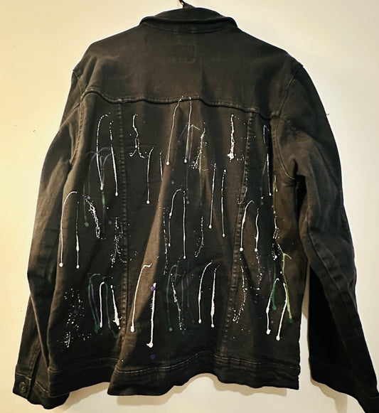 Men’s Large Black Denim paint and patchwork stylish Jacket